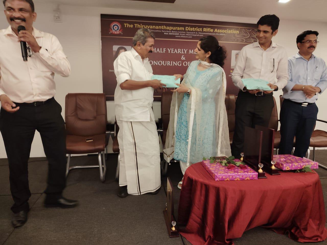 Half year meeting and honouring national trials eligible and renowned shooters. Welcome speech:Mr.Manoj T. Secretary, TRA. Presidential address:Mr.George Sebastian, Vice President, TRA. Inauguration:Mrs.Anu Kumari IAS, District Collector, Thiruvananthapuram and President of TRA. Lightning the lamp. Address and memento presentation:Mr. Thomson Jose IPS City Police Commissioner and Senior Vice President, TRA Felicitation: Mr. Biju Prabhakar IAS Dr. K. K. Manojan Dr. Devin Prabhakar Vote of thanks:Mr. Vinod V. S Treasurer, TRA.