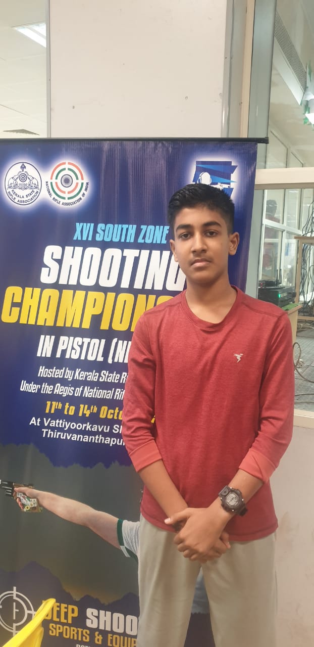 AKSHIDH N. R. Became renowned in 10 Metre Air Pistol sub-youth men.
