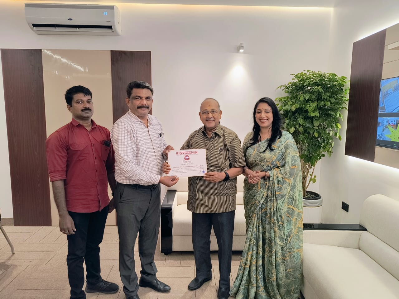 "Pistol gifted by KSRA - a token of appreciation and support for shooting excellence."